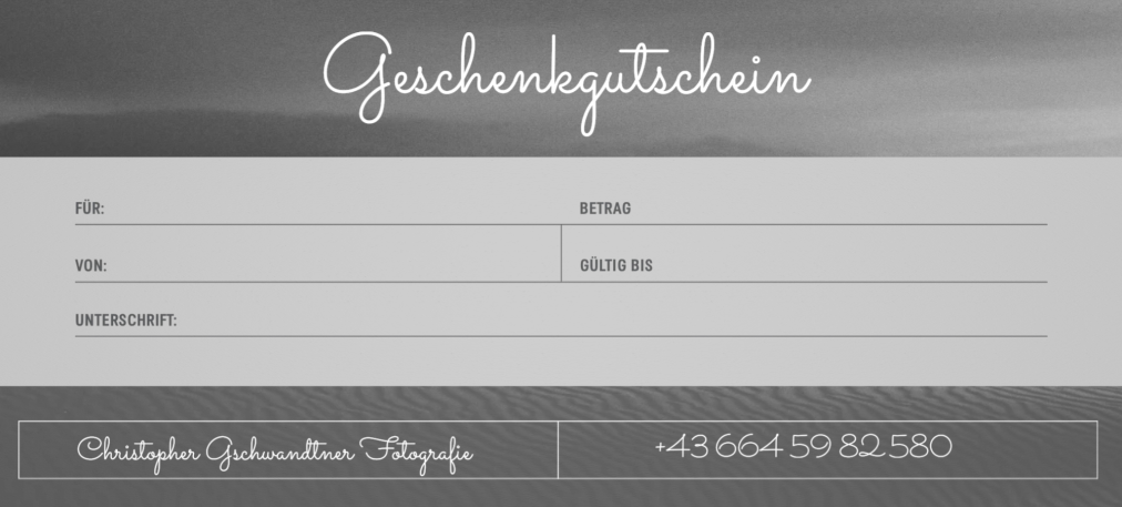 Einfach bestellen und der Gutschein wird noch am selben Tag an euch versendet.Der Gutschein kann auch als PDF an eure E-Mailadresse versendet werden. Bitte gebt mir einfach bescheid.